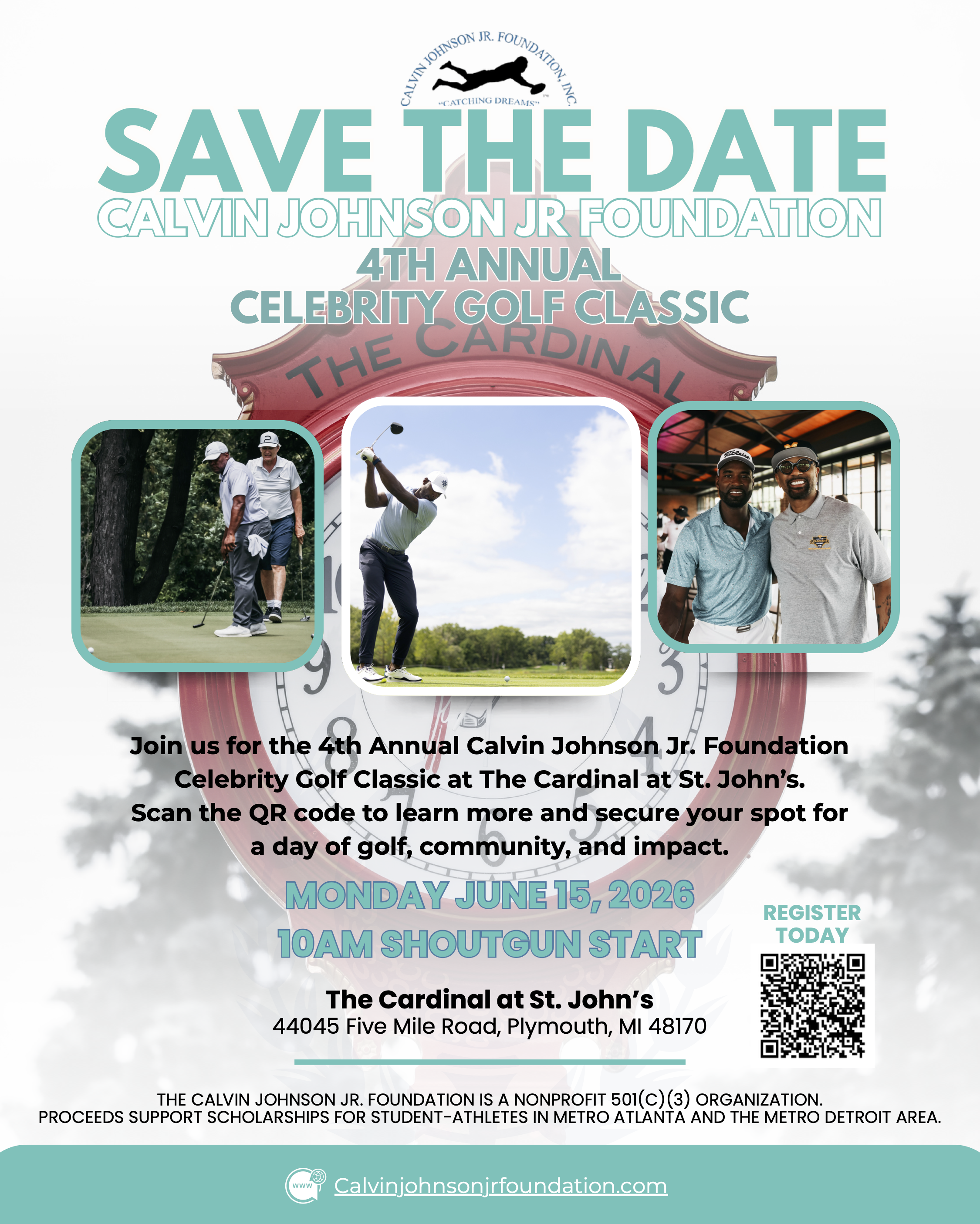 The Calvin Johnson Jr. Foundation, Inc. is a non-profit 501(c)(3) charitable organization founded in 2008 by Calvin “Megatron” Johnson Jr., former member of the Detroit Lions and 2021 inductee into the Pro Football Hall of Fame. The Foundation is dedicated to the education, training, and social development of at-risk youth, and provides financial assistance to community organizations. Since its inception, The Calvin Johnson Jr. Foundation has helped hundreds of youths with limited financial resources “catch” their dreams on and off the field. The Calvin Johnson Jr. Foundation strives to provide opportunities that will impact the lives of young men-and-women, and allow them to rise out of seemingly difficult situations and mature into confident, productive members of society.